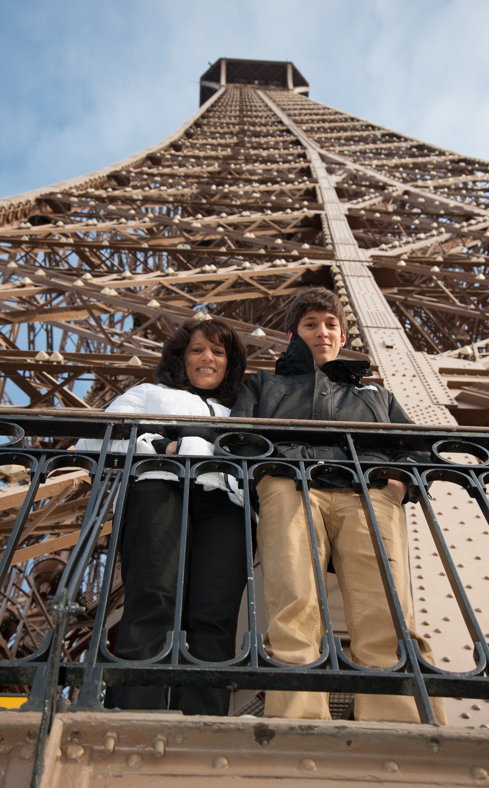 The weather forecast called for rain during the entire time of our stay but we woke up on Friday to find a bit of blue sky so we dashed out of our hotel and walked 3 minutes (yes, we’re that close) to the Tower. I got to the second platform and that was as far as I could go. I am terrified of heights and started getting wobbly knees even on the first elevator trip. Twenty years ago I was a bit bolder and went to the top of the tower and I remembered I was terrified then as well. So I stayed put since I’ve been to the top before while Joseph and Padma went to the top as this is their first trip to Paris.