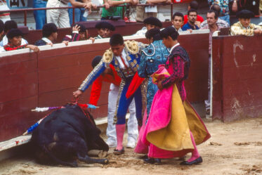 In November 1994, Padma and I followed my photographer mate, Victor Englebert, through the gates of Cali’s main bullring, the Plaza de Toros de Cañaveralejo. The concrete terraces were already filling, families and old men in hats leaning forward over the red timber barrier. Brass music drifted in the heat. Dust hung in the air.