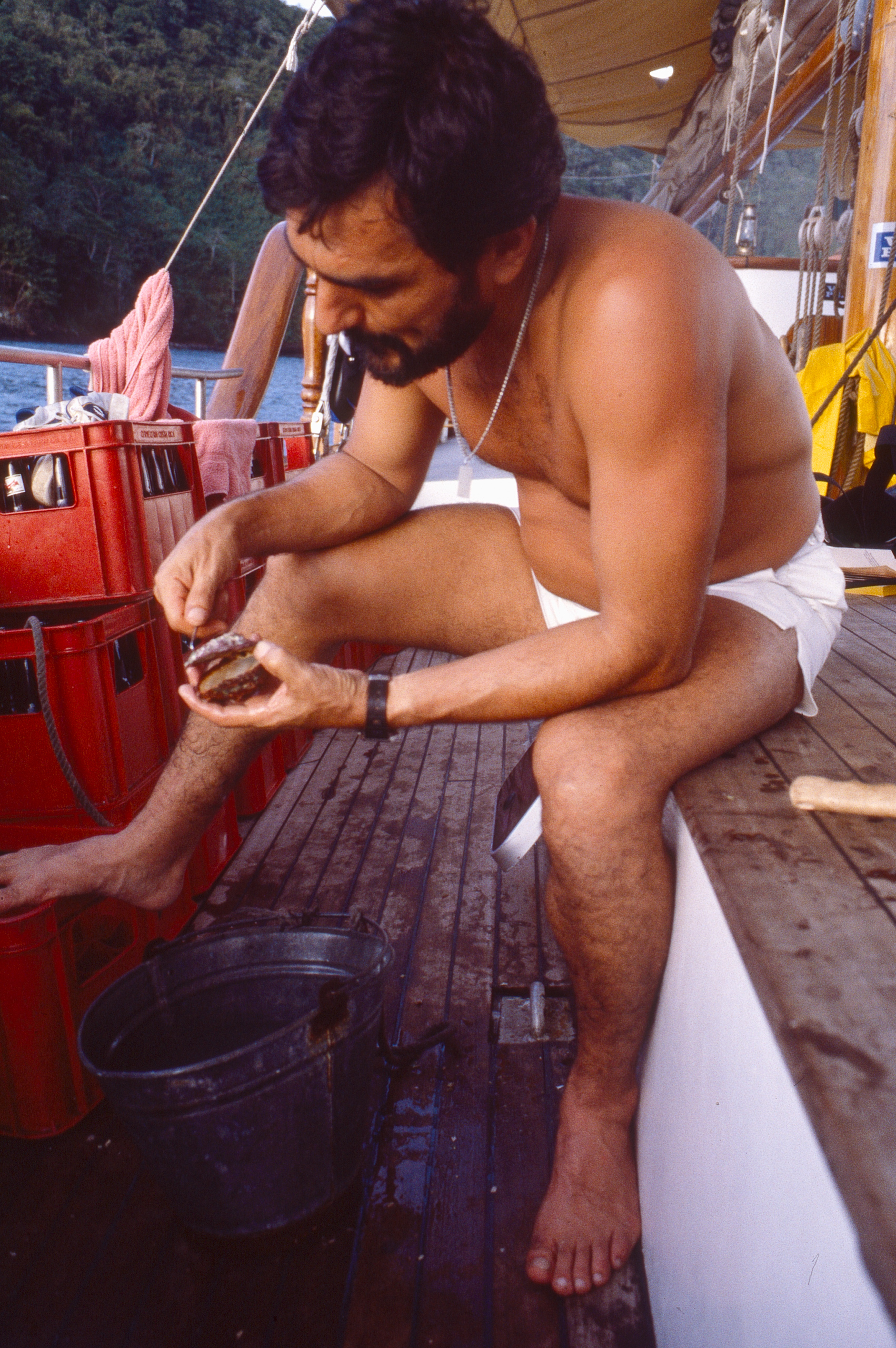 The Americans came for scuba diving. I was not certified so I spent the first couple of days onboard while they did their dives. But on the morning of the third day the divemaster, a British man named Kevin, through the PADI scuba manual to me and said ‘study this and tomorrow I’ll take you down’.