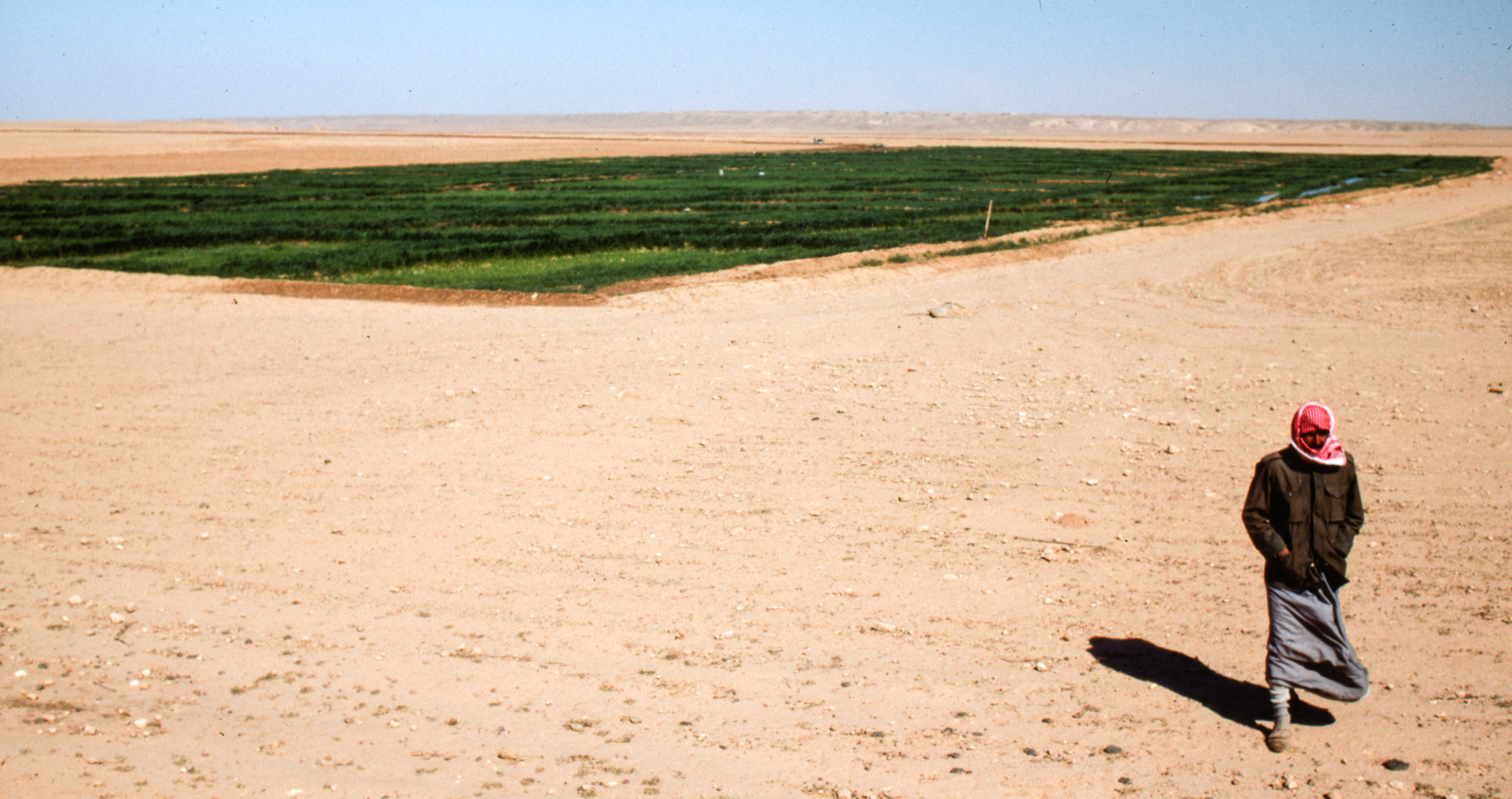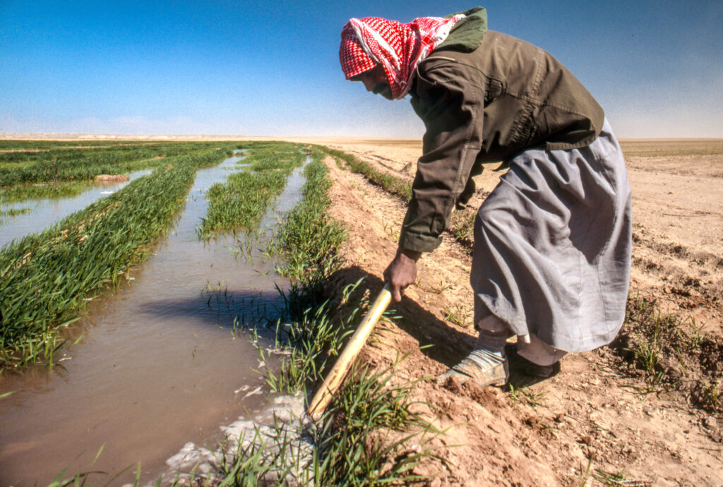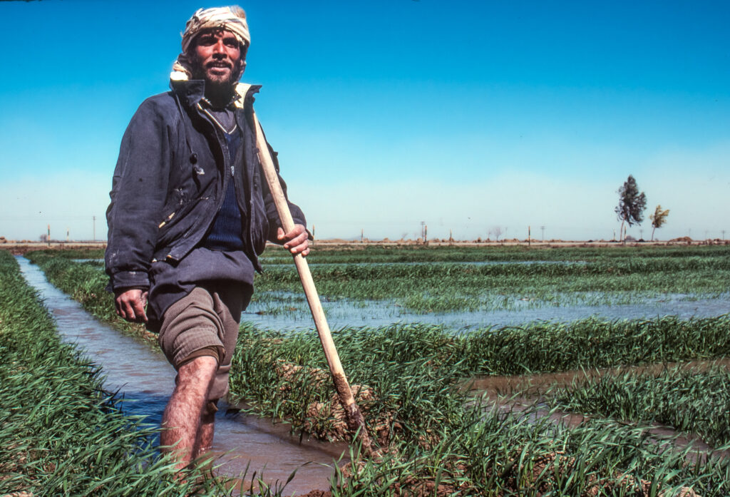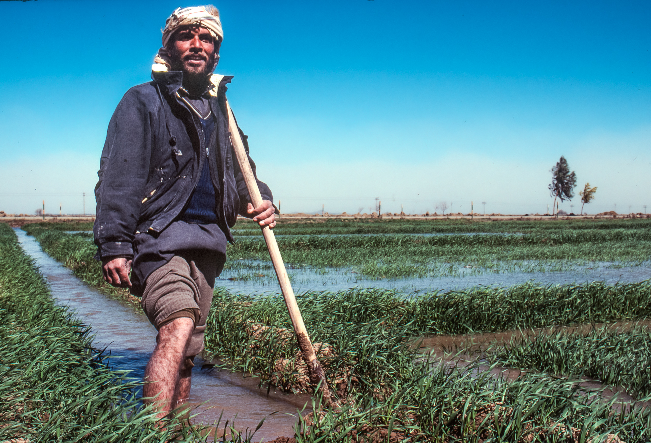 This farmer has used his allocation of Euphrates irrigation water to grow rice in an otherwise parched area a few kilometres south of the Euphrates.