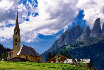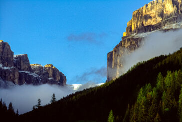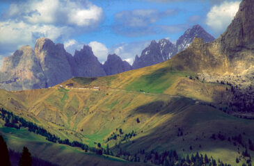 We were heading north on A22 bound for Austria after spending a night at Lago di Garda. But the to east the Dolomites were beckoning. We pulled off the A22 at Ora Auer and drove up a windy road past vineyards to Canazei. We found a campground in Canazei and spent the next day hiking up the mountains as far as we could go until the snow turned us back.