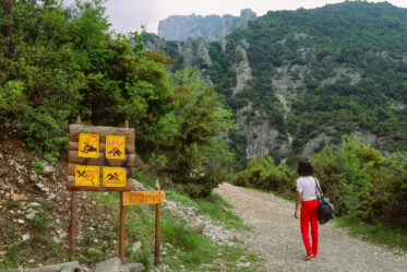 Reaching the summit of the mountain was beyond our skills but we spent a couple of days hiking around the base from road’s end at Prionia. We hiked mainly in the rain on the first day. On our second day we had reasonable weather, and hike from Litochoro to the Enipeas Waterfall, a 12 km roundtrip via the Enipeas Gorge Trail.