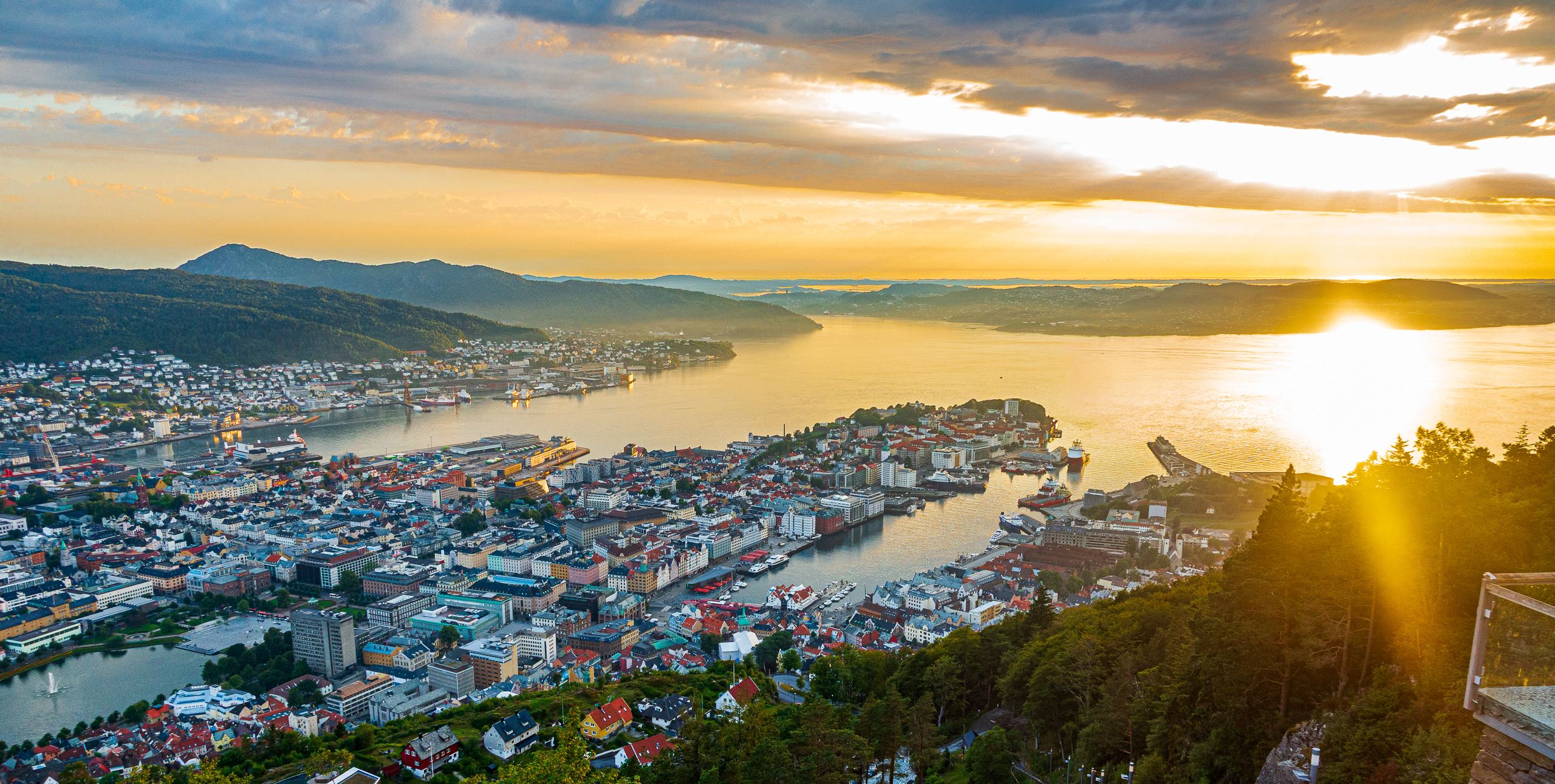 We left Ålesund early, the road tracing islands and bridges south through a familiar rhythm of ferries and tunnels. By late afternoon we rolled into Bergen, parked the car, and traded steering wheel for cable car, riding the Fløibanen up to Mount Fløyen. From the lookout, the city spread out in orderly colour—Bryggen’s timber fronts, the harbour, and the enclosing hills.