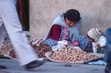 I was keen to learn more of the coca trade so Eliana took me on a roadtrip to Chapare, an area which was seeing substantial increases in coca production in the 1980s. And the United States wasn’t happy and sent anti-drug teams to Chapare in 1987. We visited an agricultural research station where cash crops like macadamia, carambola, pineapple, coconut, and black pepper were being evaluated. The government hoped that farmers would take a fancy toward these crops rather than coca. There was plenty of coca in the markets in Chapare and I snapped away and got nice photos. A month or two later I received my Kodachromes and much to my horror discovered that in my haste to load the camera I didn’t ensure the film’s leader had caught. I was shooting blanks. That really, really pissed me off to lose those pics.