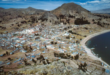 I bid farewell to Eliana after a week and decided to go on a pilgrimage to Lake Titicaca, the ‘world’s highest navigable lake’. I got a bus from La Paz and enjoyed watching the stark and arid Bolivian altiplano pass before me as late afternoon rays of light lit up the Cordillera Real. I arrived at the Strait of Tiquina and managed to get a ferry across just as the sun was setting … and discovered that’s as far as I would get. The last bus had left long before. The town of Tiquina didn’t amount to much but I pounded on a few doors and found an old lady who let me sleep on the floor of a room for a few bolivianos.