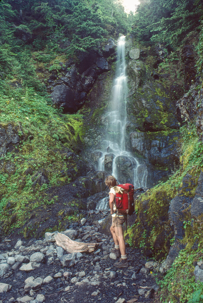 I had a few days off from my job as a ranger in the summer of 1980 at North Cascades National Park and drove over to neighbouring Mt Baker National Forest to climb up to the base of Mt Baker. As I drove up the switchbacks to the trailhead I was disappointed that it was a cloudy day but I kept driving up and up. It was still cloudy when I put on my backpack at the trailhead and I was having second thoughts about the climb as I assumed I’d be camping in the cold and rain and would not have any views.