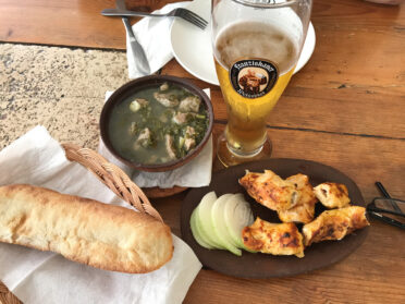 After enjoying our starters and excellent Georgian wine for two hours, we dug into the dish of kings, Mtsvadi. We had a choice of pork, beef, fish or vegetables and it was delectable.