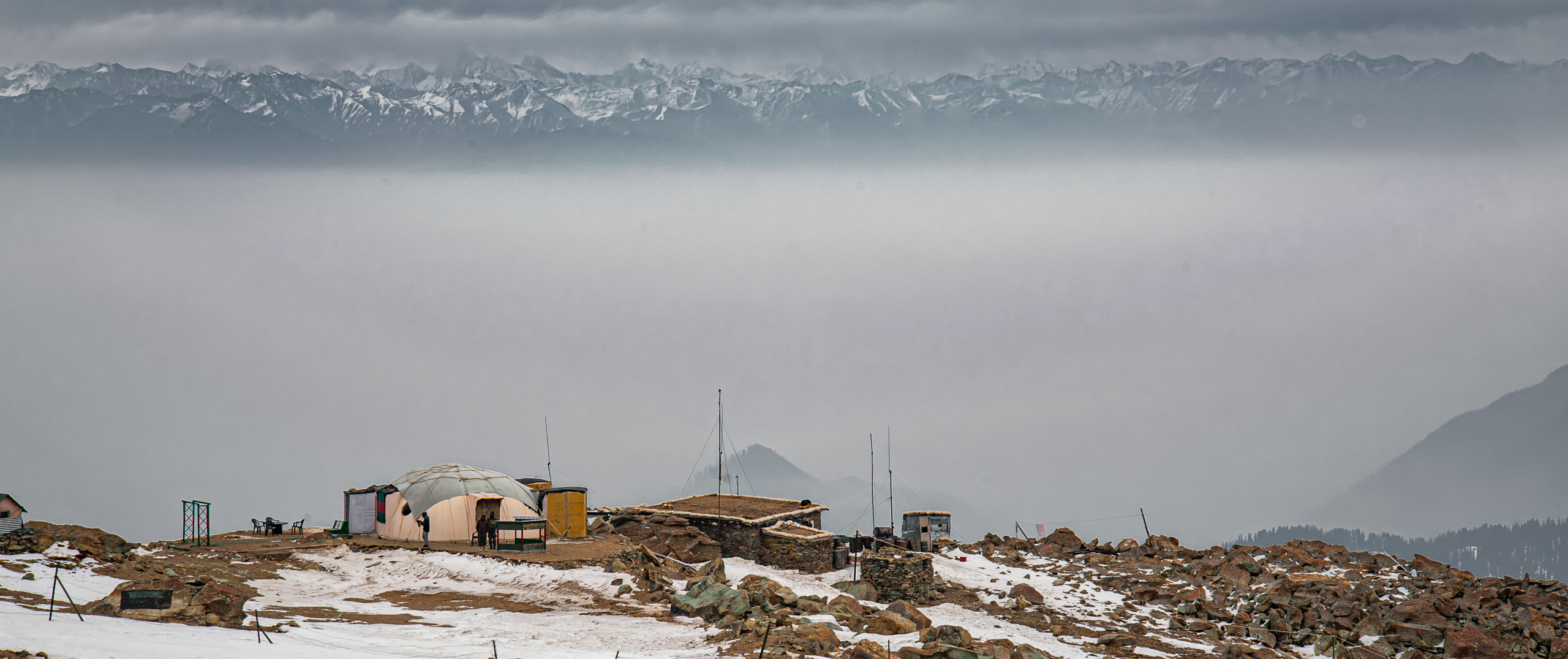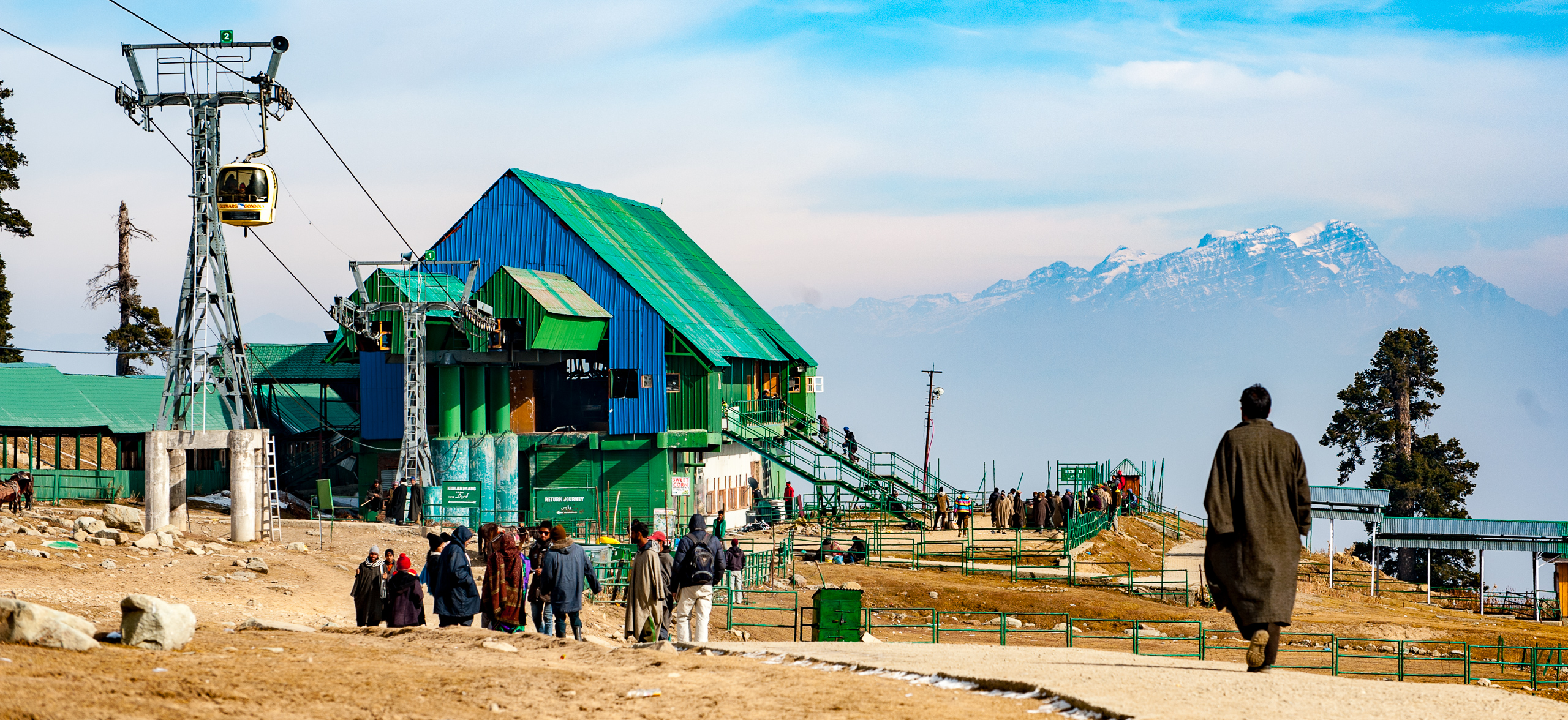 It was just plain bad luck that Gulmarg had no snow when we arrived. All of the locals were extremely concerned as it was devastating the ski and accommodation industries. Gulmarg sits at 2700 metres above sea level and was brown from the lack of snow. We had to take the gondola up to 3100 metres to find any snow and it was patchy at best.