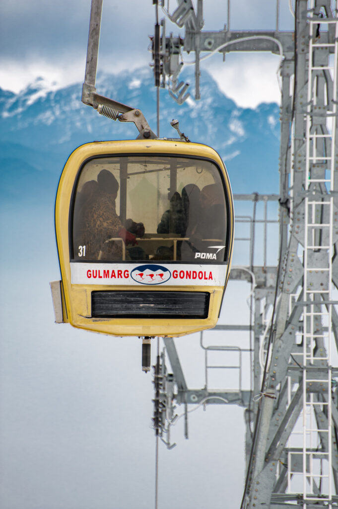 The Gulmarg Gondola was completed in 2005 and is the world’s second highest cable car. We had to delay going up the second stage because of a ‘technical fault’ but eventually made it up. The cable car is run by electricity, which is hardly stable in Gulmarg. Several times we hung in the cars dangling. ‘You do not worry,’ Farooq would say. After a minute or so the generators kicked in and the journey would continue.