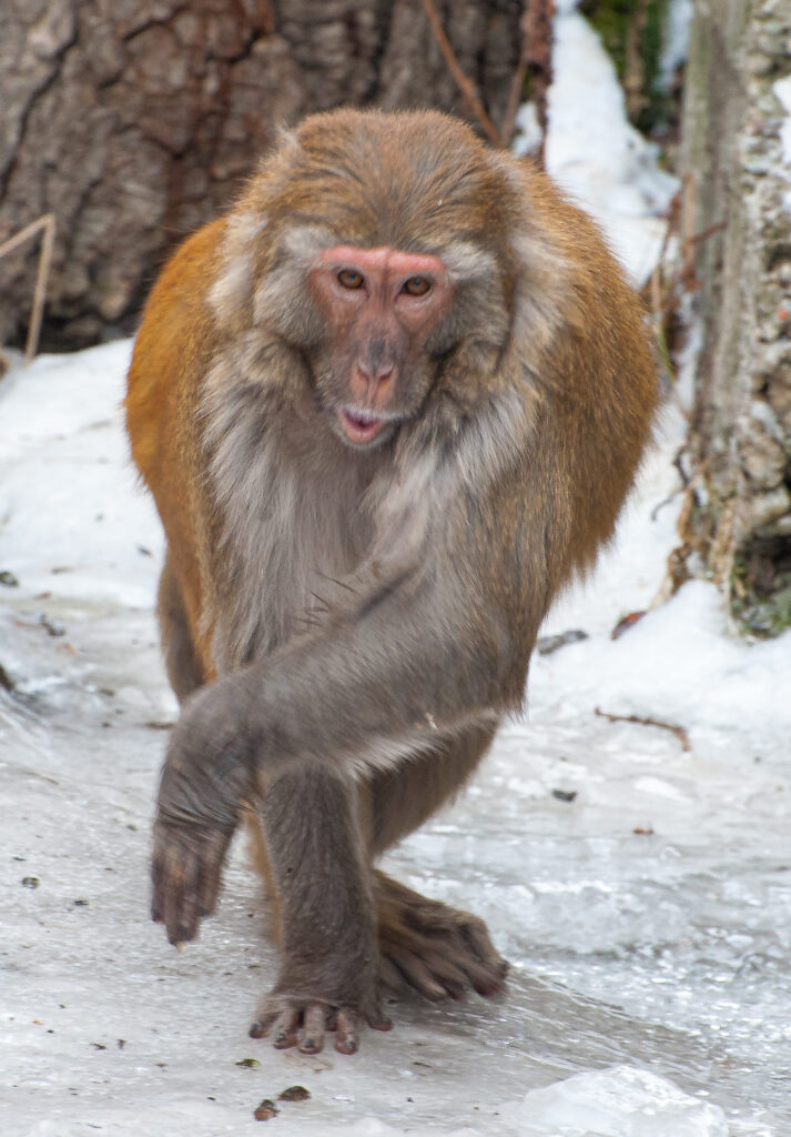 A pair of Rhesus monkeys was rummaging around the hotel. This one was drinking melted snow water while his (her?) mate was jumping up on the eaves of the hotel. They are pests in India and can be quite vicious. I kept my distance.