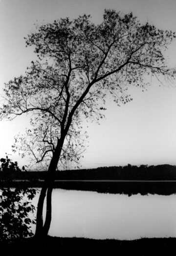I proceeded that day to Kettle Morraine and eventually made it. I found a campground which I pretty much had for myself as the cold weather kept most people in their homes. I spent the rest of the day exploring the morraines and at dusk found this single tree silhouetted against one of the lakes in Kettle Morraine.