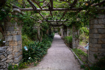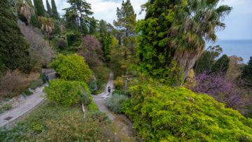 As I studied our approach to Menton, I saw a big green area on the map. Bingo! A botanic garden. I’ll never pass by a botanic garden. Padma and I spent a couple hours walking through the 18-hectare Hanbury Botanic Garden. The garden was developed by Sir Thomas Hanbury starting in 1867. It was almost totally destroyed in World War II but has been re-developed to become one of Italy’s most beautiful gardens. The gardens are now maintained by the University of Genoa. I have to admit that it appeared the gardeners had gone on strike or there was a shortage of pruning shears as I thought the whole garden was in a bit of a state of disarray.