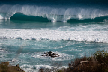 The Indian Ocean was at its finest and we watched bottlenose dolphins and later humans surfing in the turbulent waves.