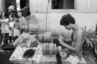 Indeed it was a factory. Three men were sitting around a table with grinding wheels and drills and making jewelry. I really don’t know what I did to gain their confidence. I think I just said I was keen to learn how they make the jewelry and they told me all about it. Nice guys. The children of the home were curious and watched me shoot and chat so I shot pics of them as well.