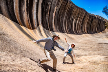 I plugged ‘Home’ into Google Maps and it guided us through some less travelled roads through Western Australia’s Wheatbelt. The wheat was ready to harvest and combines were out in numbers. We took a detour so Heiko and Susanne could do some inland surfing at Wave Rock. In eight hours of driving we could almost count the number of cars we encountered as we drove the back roads of WA. It was something our visitors appreciated since empty roads are a rarity in Europe.