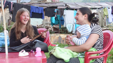 As we were having dinner in our guesthouse we heard beautiful music coming through the window. I assumed someone had turned on a radio. Hans looked out the window and saw a young mother singing accompanied by a friend on the pandori, a Georgian guitar. We went out to join them and heard ballads about life in the Caucasus.