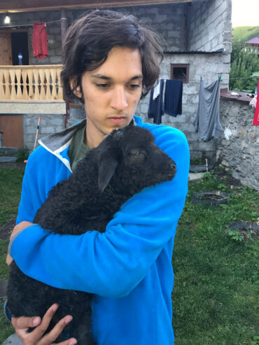 After spending a cold and rainy day in Adishi, we were rewarded with a spectacular sunset. We joined Elizabeth and her little lamb for a stroll through her small village at the foot of Mt Telnukdi.