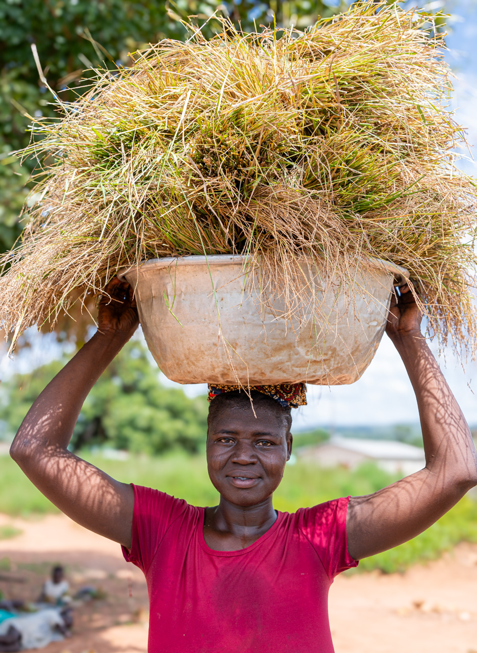 We arrived in time to see Mathias, a pastor turned fonio farmer, harvest his field. A team of men laboriously used sickles to cut the stalks and then tied them in bundles. Women collected the bundles from the field. Mathias told us it was his first year of growing fonio. His late father often spoke of it so in his first year of retirement from pastoring he asked some neighbouring farmers for seed and planted his ancestral food.