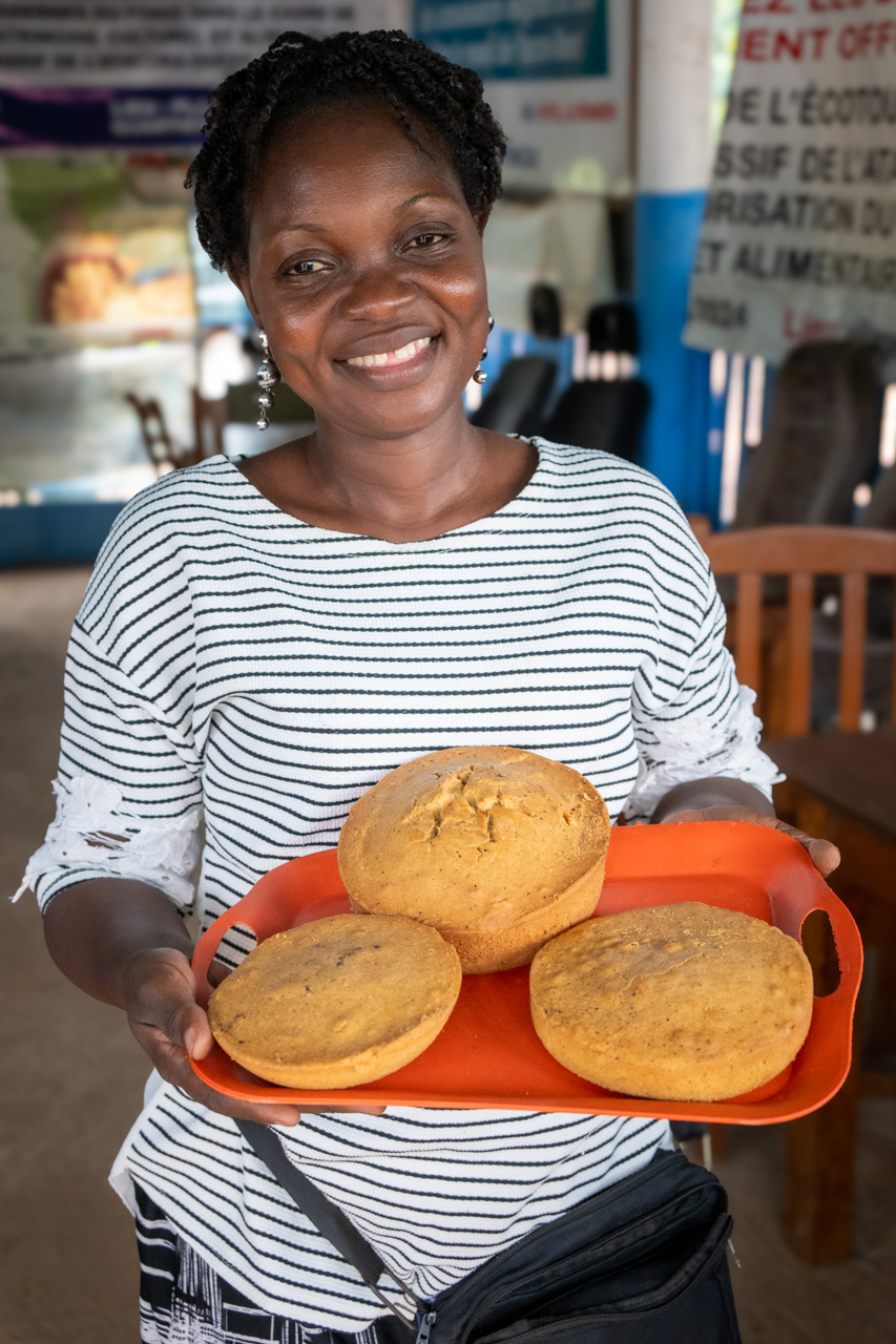 I learned that fonio was grown not so much as a hunger food but because of its taste. I saw a fair bit of fonio in a couple of days and was eager to get some of it in my mouth. And there is just the place in Natitingou for that. A restaurant specializing in fonio. We started with a hot fonio porridge. The next day we had fonio couscous, followed with a fonio dough. And finally sweet cakes made from fonio flour. Later we bought some crispy chips made from fonio. Yum, yum, yum.