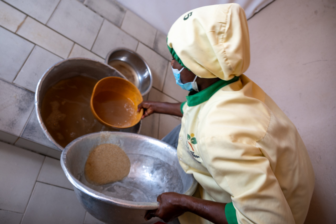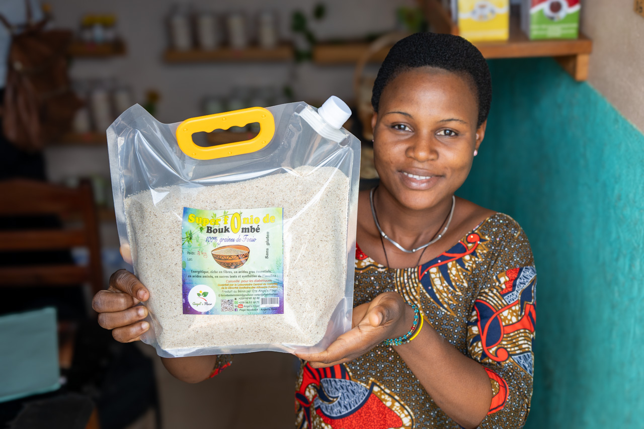 As a result of the difficulties of the harvest and processing merchants need to sell fonio at a price higher than other grains. We visited Angel’s Floor. An enterprise by three sisters who saw promise in bringing fonio to the market. They process fonio received from farmers and make a variety of gluten-free products: couscous, chips and flour. Everything they make gets sold. They wish they could get more fonio.