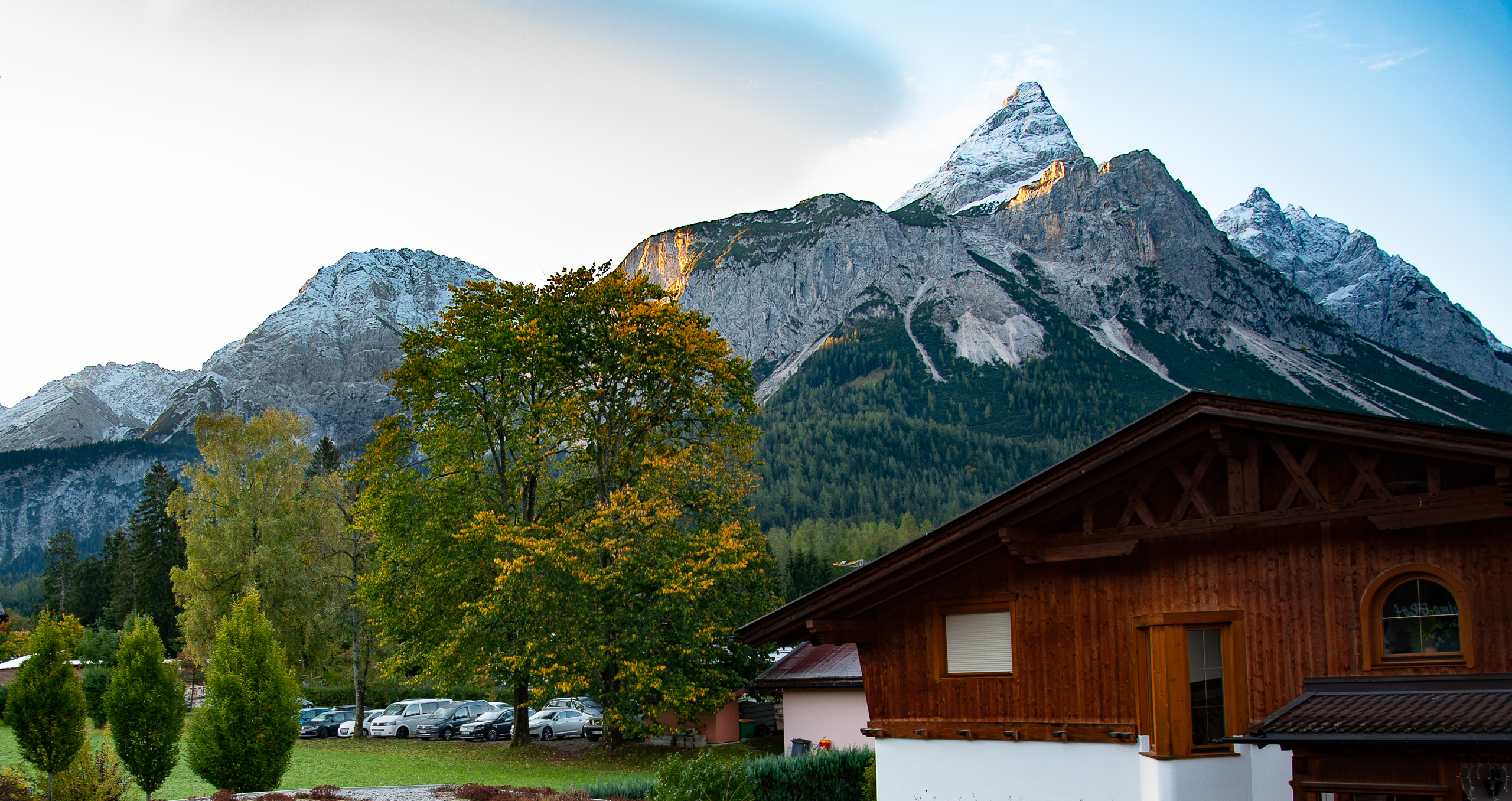 Padma and I extended the German Reunification Day into a long weekend and set up camp at a guesthouse in the Austrian Tyrol village of Ehrwald, at the base of the Zugspitze. Some might say we had crappy weather as it rained a lot, but we thought the mountains looked even more majestic shrouded in low lying clouds.